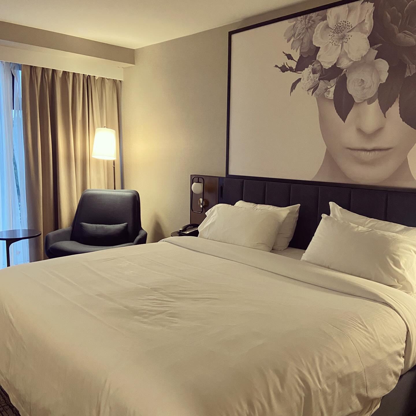 ホテルにチェックインすると、ベッドの上に大きな女性の顔の写真が飾ってあった。顔の上半分は花で隠れている、アートな写真なんだろうけどなんとなく、大きな顔が部屋を見ているようでなんか落ち着かなかった。午後ひとつミーティングをこなしたあと、夕方はダウンタウン方面まで出て行き、日系アーティストたちとディナーした。
